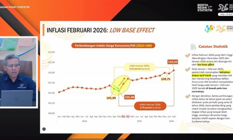 “Komoditas yang memberikan andil inflasi terbesar pada kelompok perawatan pribadi dan jasa lainnya adalah komoditas emas perhiasan. Komoditas emas perhiasan ini juga telah mengalami inflasi secara bulanan selama 30 bulan berturut-turut. Inflasi emas perhiasan pada bulan Februari 2026 sebesar 8,42 persen dan memberikan andil inflasi sebesar 0,19 persen,” jelasnya.