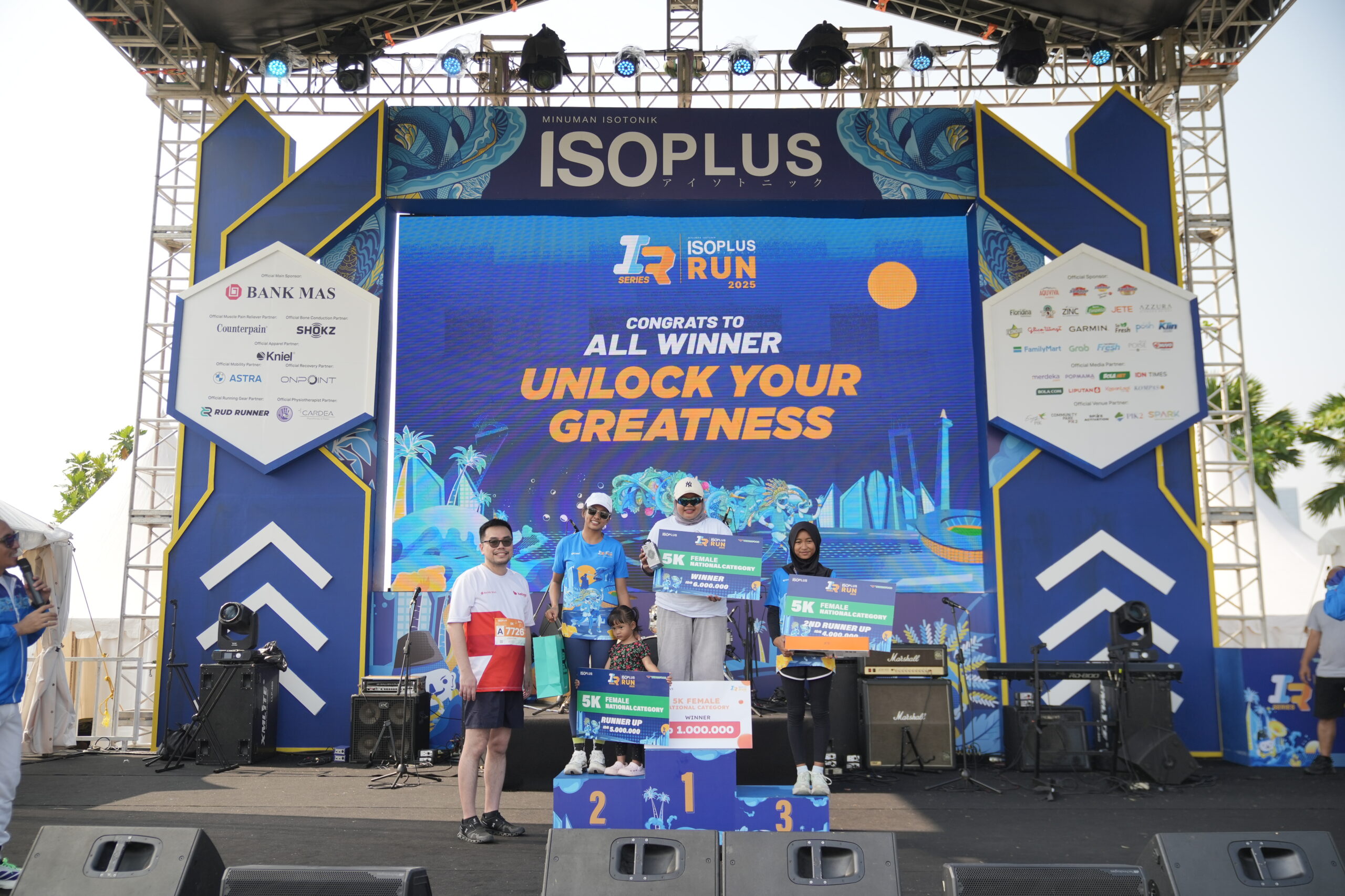 Meski memiliki cut off time lebih panjang agar peserta dapat lebih menikmati proses lari mereka, pelari tercepat tetap menjadi sorotan dalam setiap ajang lomba. Nah pada ajang ISOPLUS Run 2025 Jakarta, pelari tercepat kategori 10K diraih Muhammad Ady Saputra yang mencatatkan waktu finish tercepat di 34 menit 32 detik, sementara Novia Nirwani menjadi juara umum pelari putri dengan catatan waktu 45 menit 42 detik.