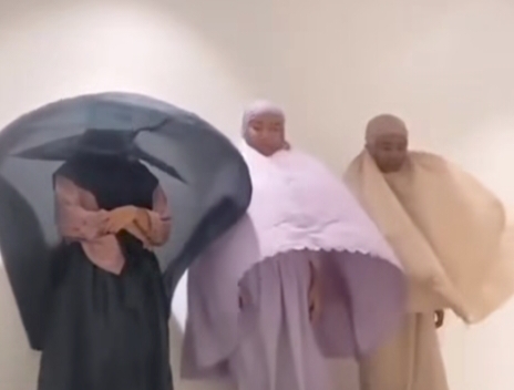 Yap, para cewek dalam vdeo viral ini mengenakan mukena berbahan parasut yang mengembang tertiup angin kencang.