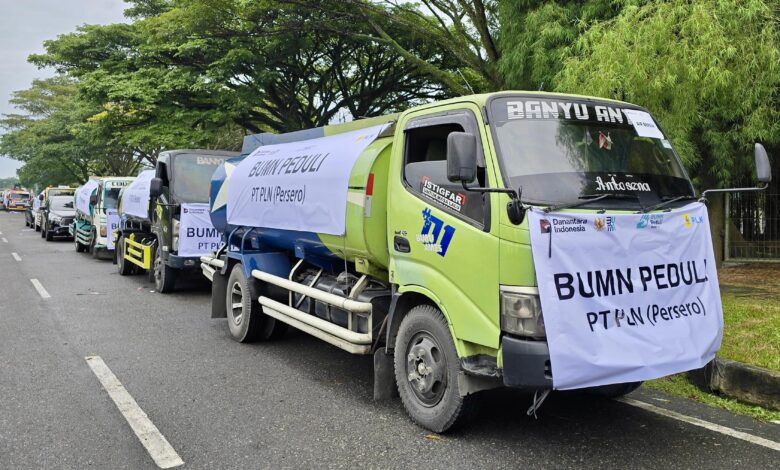 Bantuan dari PLN meliputi 10 truk air bersih, 6 truk toren air, peralatan kebersihan, selimut, serta perlengkapan ibadah untuk mendukung aktivitas dan kenyamanan warga di lokasi terdampak.